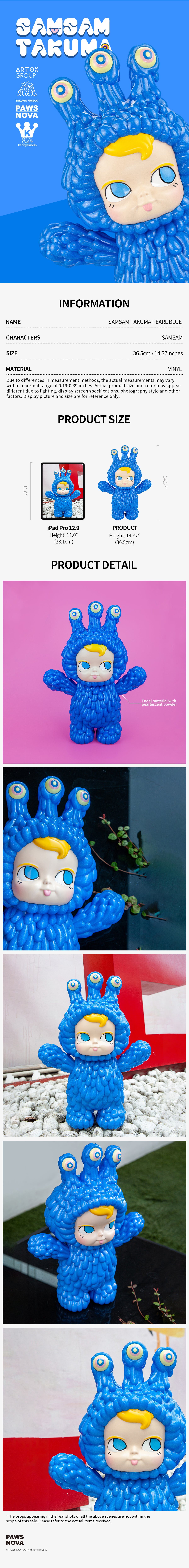 Born from the seamless intertwining of characters created by SamSam and Takuma Fujisaki, the "SamSam Takuma Pearl Blue" comes to life in an instant, filled with emotion and vitality.
